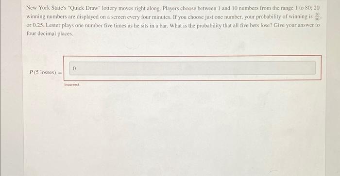 Solved New York State S Quick Draw Lottery Moves Right Chegg Com